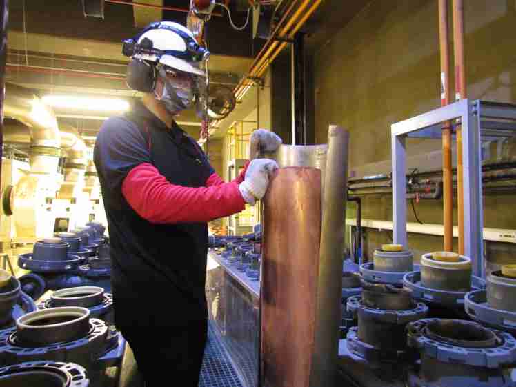 www.z6.com将废弃物转化成有效的工业或民生原物料,,,,图为废铜液淬炼后再制成纯度极高的铜管